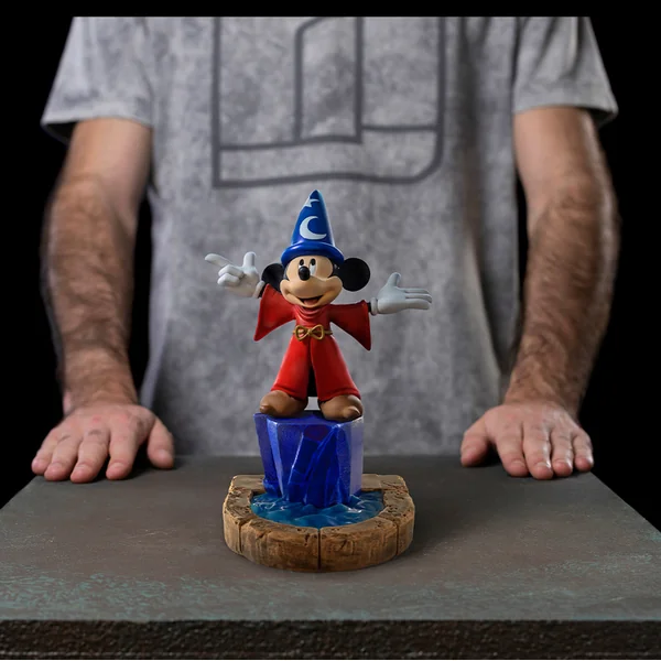 La figurine Mickey Fantasia DLX – Disney Fantasia – Art Scale 1/10 de Iron Studios représente le jeune apprenti sorcier Mickey au sommet d’une colonne de roche cristallisée, dirigeant avec enthousiasme des vagues d’eau – dans une tunique rouge et un chapeau magique. La riche base diorama est pleine de détails et de références cinématographiques, y compris des balais humanoïdes portant des seaux d’eau. La figurine est inspirée de la partie la plus célèbre du film d’animation Fantasia (1940) des Walt Disney Studios, tirée du poème « L’Apprenti Sorcier » (L’Apprenti Sorcier) de Johann Wolfgang von Goethe, avec une composition symphonique de Paul Dukas. Publiée à l’occasion du 100e anniversaire de Disney.