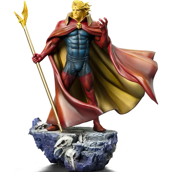 La figurine Adam Warlock – Infinity Gauntlet – Marvel Comics – Art Scale 1/10 de Iron Studios capture le puissant héros à la peau dorée dans toute sa gloire cosmique. Adam Warlock est représenté avec le Staff Karmique, à travers lequel il canalise des énergies mystiques, la main gauche levée avec les doigts repliés et l’iconique cape rouge flottant dramatiquement dans le vent cosmique. La base est composée de fragments de roches du temple fou dédié à Lady Death, inspirée de la série de comics Infinity Saga. Le personnage a été créé par Stan Lee et Jack Kirby en 1967.