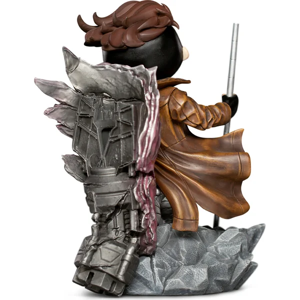 Gambit – X-Men – MiniCo est une sculpture de collection stylisée d’Iron Studios de la ligne MiniCo, dédiée aux super-héros mutants les plus populaires de l’univers Marvel – X-Men. La collection s’inspire du design des comics des années 90 et capture le charismatique Gambit appuyé sur les débris métalliques d’un robot Sentinel, avec sa bâton à la main et une carte As de cœur entre les doigts. Dans une ambiance apparemment détendue après une bataille bien menée, il flirte avec sa coéquipière Rogue, dont il est tombé amoureux – et ce sentiment est réciproque.
