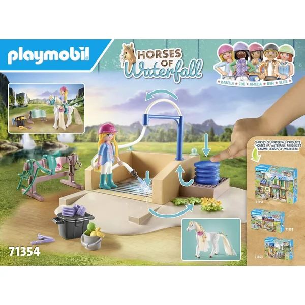 Cette photo est magnifique ! Je dois vite la poster sur les réseaux sociaux ! Isabella tient un blog sur les chevaux et veut gagner le plus de fans possible. Grace à son sens de la mode, elle a déjà une communauté qui la suit quotidiennement dans ses aventures avec sa jument Lioness. Et cela inclus le moment de la douche de Lioness. La jument se laisse faire pendant que Isabella lui passe gentiment de l’eau dessus. Après la douche, Isabella fait toujours de jolies nattes dans la crinière de Lioness, pour qu’elle soit toujours la plus belle des juments. Le coffret comprend Isabella, sa jument Lioness dont la crinière et la queue peuvent être peignées, un box de douche fonctionnel qui réutilise l’eau qui à servit à laver les chevaux et de nombreux autres accessoires.