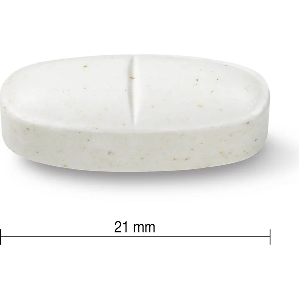 Contient également : cellulose (support), cellulose soluble (support), stéarate de magnésium d’origine végétale, hydroxypropylcellulose (émulsifiant), acide stéarique d’origine végétale, dioxyde de silicium (agent d’enrobage), cire de carnauba (agent d’enrobage)