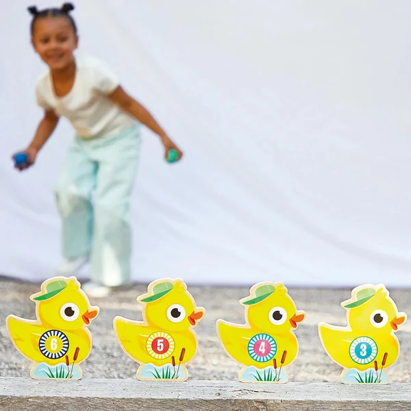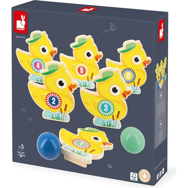 Il est facilement réglable, amusant et bénéfique en termes de développement des compétences des enfants. Ces quilles de bowling en forme de canard font partie de notre gamme APPLEPOP ; une collection amusante et originale aux couleurs de parc d’attractions. Êtes-vous donc prêt à atteindre votre cible ? Ce jeu de compétences est fabriqué en bois certifié FSC™.