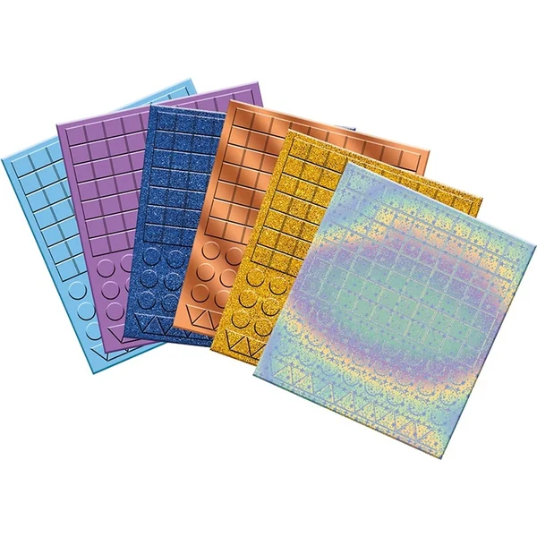 L’avantage de cette boîte créative réside dans les mosaïques avec différents effets visuels : mat, scintillant, holographique et métallique.