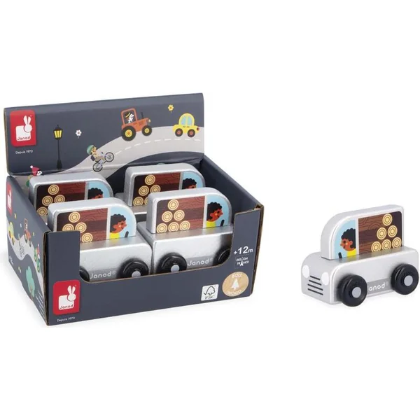 Janod Cross roads Voiture en bois à pousser Pickup gris