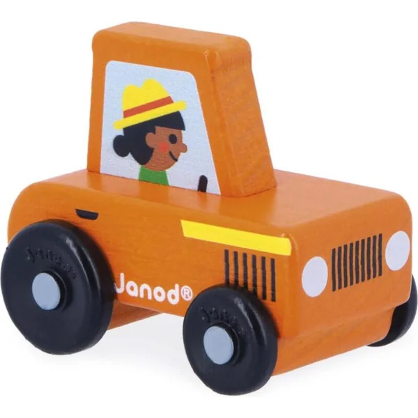 Janod Cross roads Voiture en bois à pousser Tracteur rouge