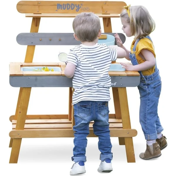 - Muddy Lab permettra à votre enfant de développer sa créativité et sa sensibilité à la nature tout en s’amusant seul ou avec d’autres. Le jouet est fabriqué en bois certifié FSCTM.