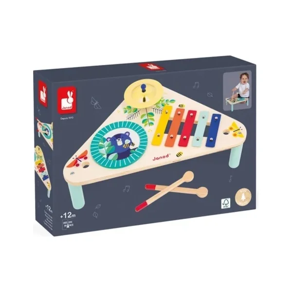 Janod Gioia Table musicale en bois xylophone-tambour-cymbales