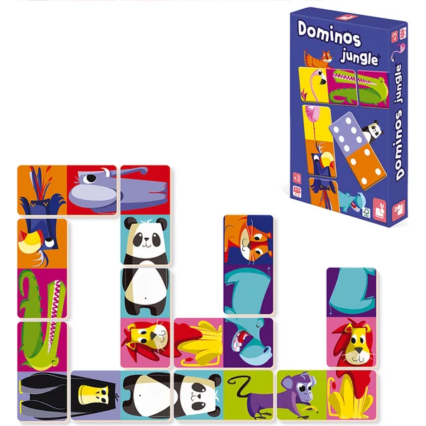Domino JUNGLE – jeu de société avec des animaux – Quels animaux de la jungle connaissez-vous ? Savez-vous quel animal est sur l’image ? Un domino en carton double face avec des motifs d’animaux de la jungle, c’est un excellent cadeau pour vos enfants.
