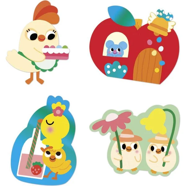 Les autocollants représentent des scènes adorables de la vie des animaux dans le jardin, par exemple des grenouilles près de l’étang, des écureuils à la maison avec un gland ou un ours attrapant des papillons. La moitié d’entre eux a une surface métallique brillante, ce qui leur confère un charme unique. Parfait comme cadeau.