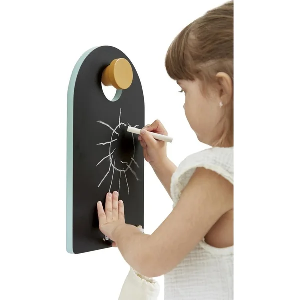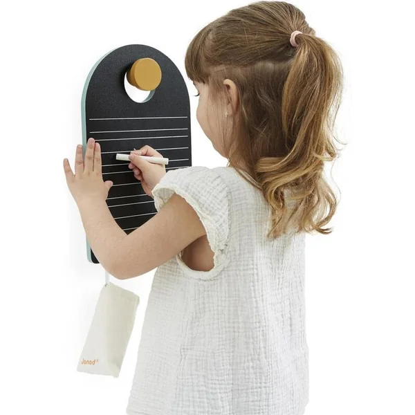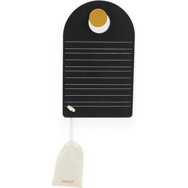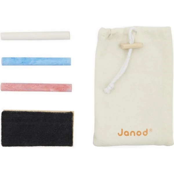 - Pour plus de confort, un sac en coton contenant 3 morceaux de craie et une gomme peut être fixé au tableau.