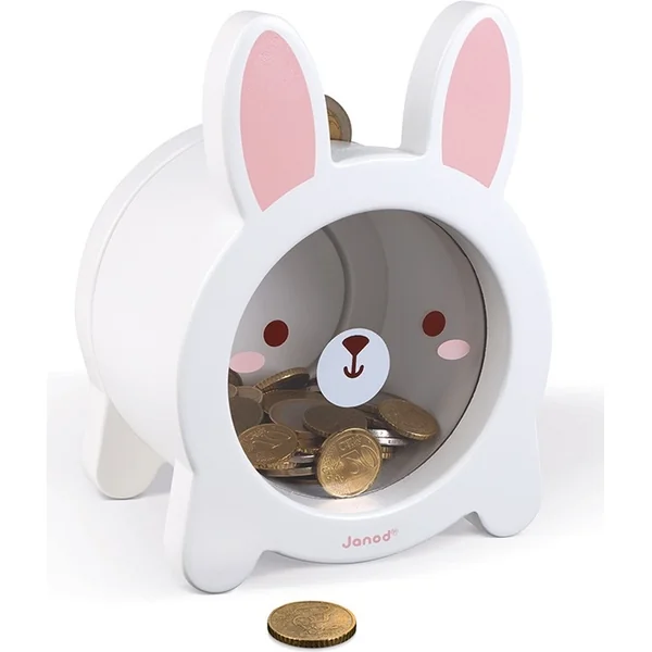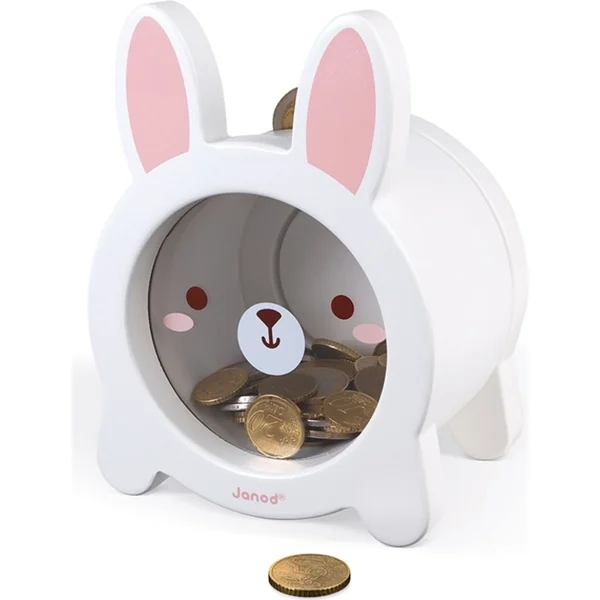 Une tirelire en bois pour enfants Lapin Janod série Deco. Cette tirelire en bois stylée sera un excellent assistant pour les premiers économies d’argent des enfants.