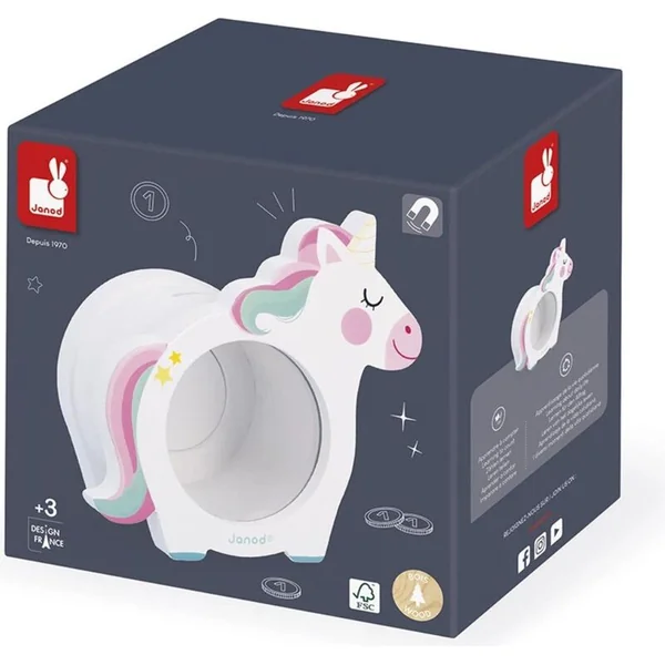 Découvrez la licorne Janod, joli cochon en bois qui permet aux enfants de garder leurs économies en sécurité.