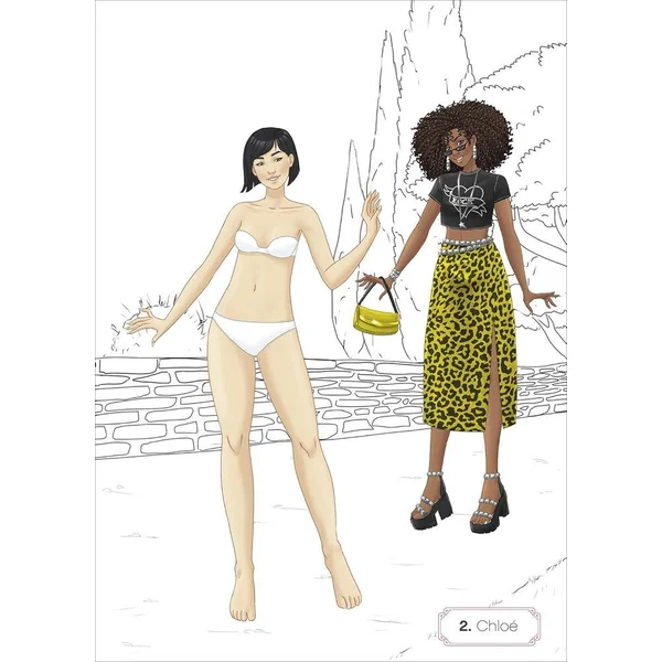 Dessine, colle tes stickers, et colorie tes créations, c’est toi la styliste de demain.