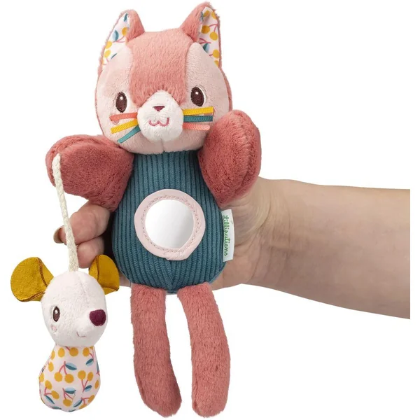 Jeanne le chat s’anime entre vos doigts ! En la manipulant, on débusque un bruit de hochet dissimulé à l’intérieur, destiné à stimuler délicatement le bébé. Son petit ami en tissu lui procure une surprise sensorielle grâce au son crissant du papier. De par sa taille réduite, il peut être emporté partout et occuper bébé à tout instant.