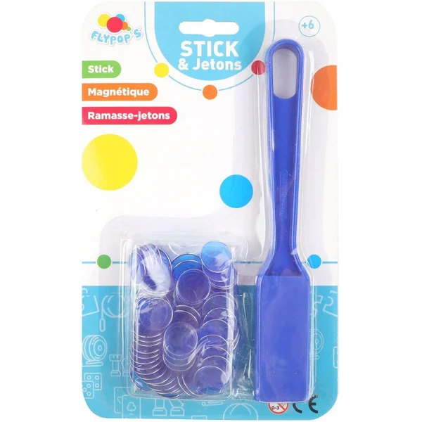 100 jetons magnétiques et 1 stick ramasse jetons. Il mesure 23 cm x 14 cm.