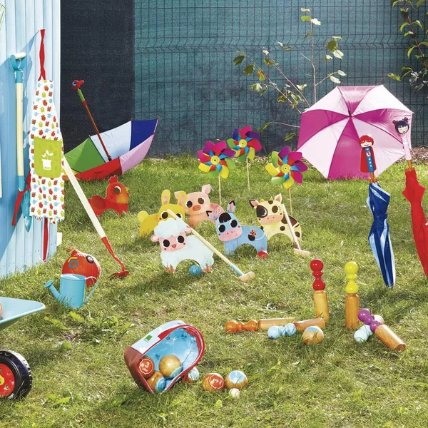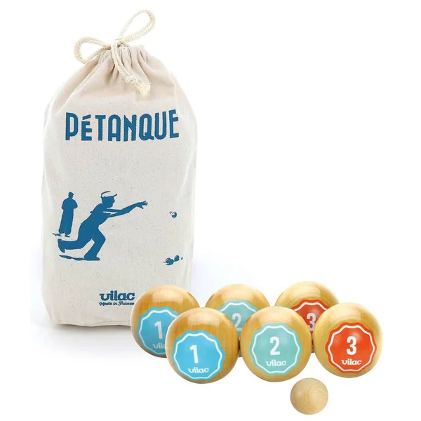 Jeu de pétanque en bois vernis au style rétro livré dans son joli petit sac en coton. Fabrication française.