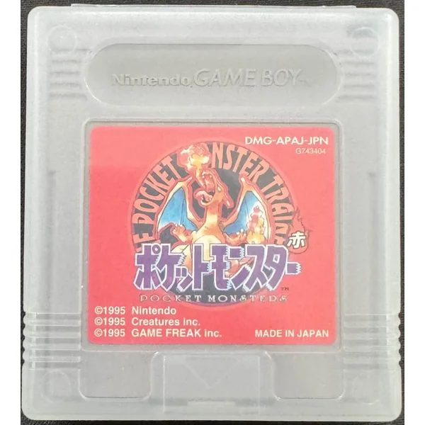 Cartouche protégée de la version japonaise du jeu Pokémon Red (1995), pour GameBoy.