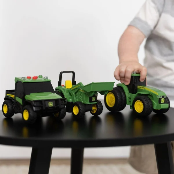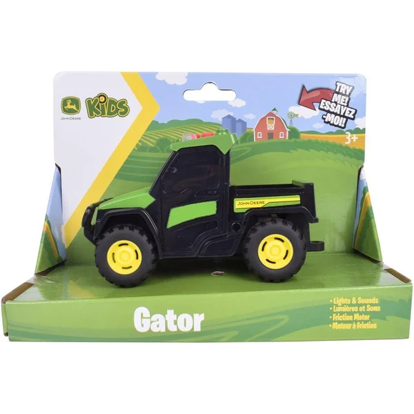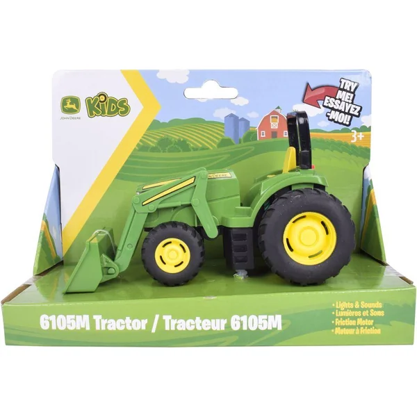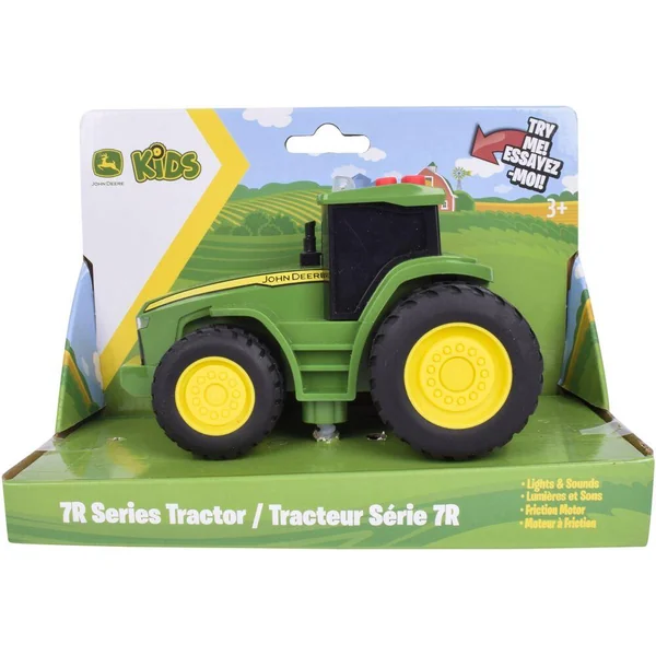 L’aventure commence avec les Mini Véhicules de Ferme John Deere ! Reçois l’un des 3 véhicules emblématiques de la marque John Deere : Le tracteur 7R Series Le tracteur 6105M Et le célèbre Gator Chaque mini véhicule est une réplique fidèle des machines grandeur nature, avec des détails authentiques, un design robuste et une conception soignée. Appuie sur l’un des trois boutons pour activer des sons réalistes et des lumières LED clignotantes. Ils sont aussi équipés d’un moteur à friction : tire le véhicule vers l’arrière, relâche-le et regarde-le foncer !
