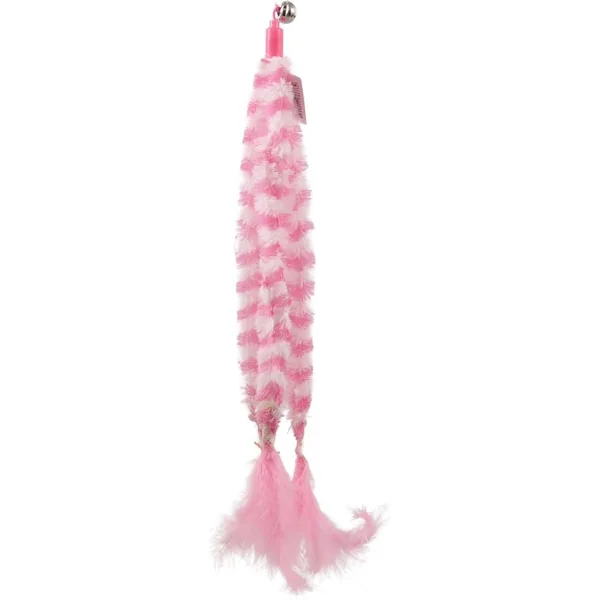 Le jouet combine des matériaux naturels et des éléments attrayants. La longue poignée permet au propriétaire une manipulation confortable et une distance sécurisée des griffes du chat pendant le jeu. À l’extrémité de la corde se trouve une partie en coton agrémentée de douces plumes, qui, par leur mouvement, simulent fidèlement une proie et attirent immédiatement l’attention de chaque félin.