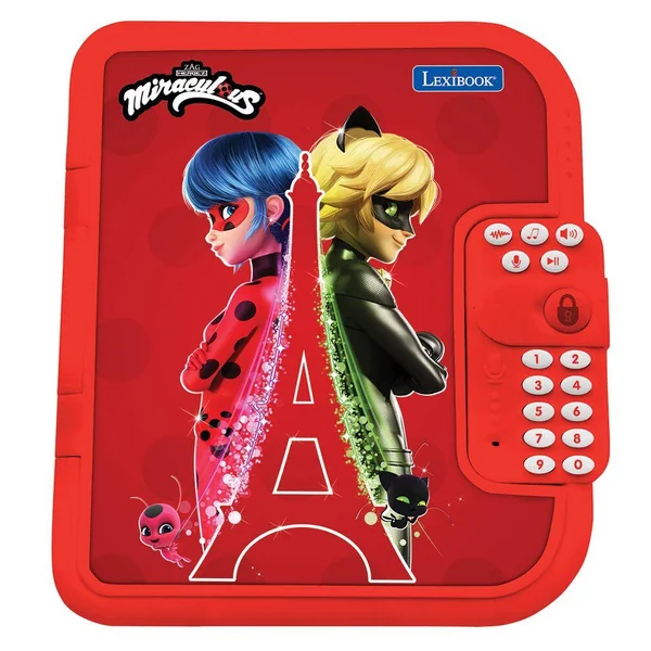 Un journal intime sécurisé Miraculous pour noter tous tes secrets et les garder en sécurité. Crée un mot de passe à 4 chiffres pour déverrouiller le journal. Fonctions amusantes : enregistreur vocal, changeur de voix… Personnalise ton carnet. Un stylo inclus, possibilité de changer de carnet lorsque tu auras rempli toutes les pages avec tes secrets !