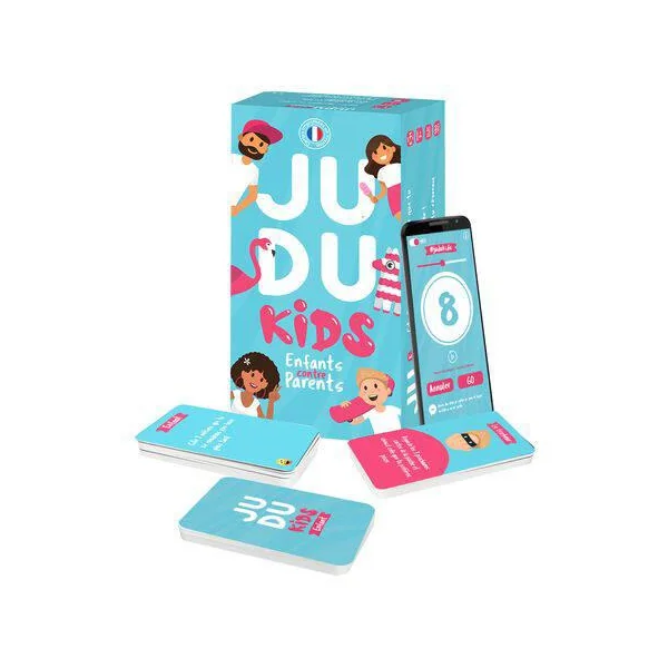 Judukids : la version familiale des Juduku ! 480 cartes super marrantes pour animer vos moments en famille et en savoir + sur ses parents ou enfants. Des cartes spéciales ainsi que de nouveaux modes de jeux seront présent pour amener un peu de fun au cours de la partie.