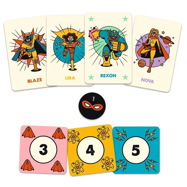 Les super-héros ne montrent jamais leur vrai visage ! Devinez, révélez et raflez les super-pouvoirs dans un jeu rapide et plein de rebondissements, où stratégie et mémoire font votre force !