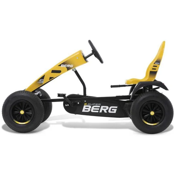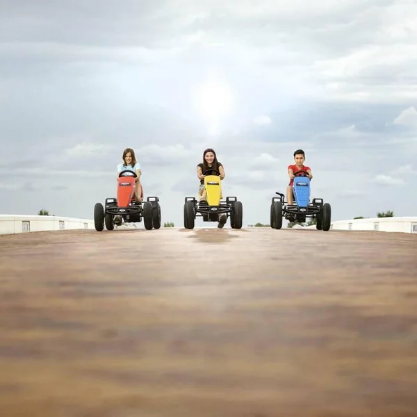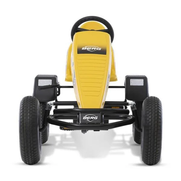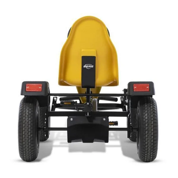 Le kart à pédales classique repose sur plus de 30 années d’expérience en fabrication. Tu ressentiras, entendras et verras les avantages de cette expérience quand tu conduiras ce kart.Le système BFR intègre une roue libre, ce qui signifie que les pédales ne tournent pas lorsque le kart se déplace et que tu arrêtes de pédaler. Cela assure une conduite très sûre. Cela se passe de manière automatique, sans avoir besoin de passer les vitesses. Grâce aux freins à rétropédalage, vous pouvez freiner rapidement et puissamment.Siege ajustableChaque cadre BERG dispose d’un siège ajustable. Le siège peut être réglé en 6 positions différentes, ce qui assure de nombreuses années de plaisir de conduite!Rouler confortablementLes karts à pédales BERG disposent de diverses fonctionnalités qui visent à rendre votre conduite aussi confortable que possible. En premier lieu, les karts ont quatre pneus à air. Les pneus à air renforcent l’adhérence à la route et rendent la conduite plus agréable. Les pneus à air offrent ensuite moins de résistance au mouvement que les pneus en caoutchouc classiques, ce qui vous permet de rouler plus vite. L’essieu oscillant du kart à pédales veille à assurer que les quatre roues soient toujours en contact avec le sol, et ce, même sur terrain accidenté.Faciles a assemblerLes karts à pédales BERG sont très faciles à assembler. Les essieux arrière doivent être placés à gauche et à droite dans le logement du capot de protection de la chaîne. Cela peut se faire sans devoir ouvrir le capot de protection de la chaîne. Ensuite, les deux boulons doivent être serrés des deux côtés. Il faut encore fixer différents éléments, comme le siège, les roues et le volant, ensuite vous êtes prêt(e) à prendre la route!