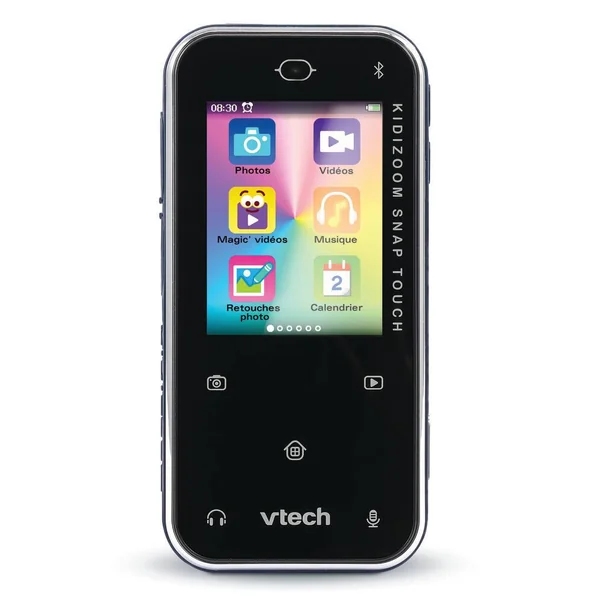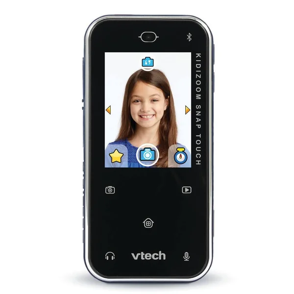 Le KidiZoom Snap Touch bleu est à la fois un appareil photo, un enregistreur vocal, un réveil et bien d’autres encore. Imitant un vrai smartphone, ce modèle est doté d’un écran tactile LCD avec 5 touches de commandes tactiles, d’une batterie rechargeable, d’un port de carte microSD et d’une prise jack pour brancher le casque. Grâce au double objectif, l’enfant peut prendre des photos et des vidéos auxquelles il peut ajouter des filtres et autres effets spéciaux.