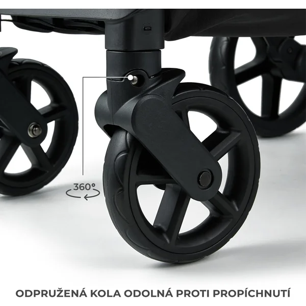 La poussette offre un dossier réglable, deux niveaux de réglage du repose-jambes et une barre de sécurité pivotante avec possibilité de déconnexion, facilitant l’installation et le retrait de l’enfant de la poussette. Le panier spacieux d’une capacité de 5 kg sous la poussette permet de ranger facilement les courses et d’autres objets nécessaires.