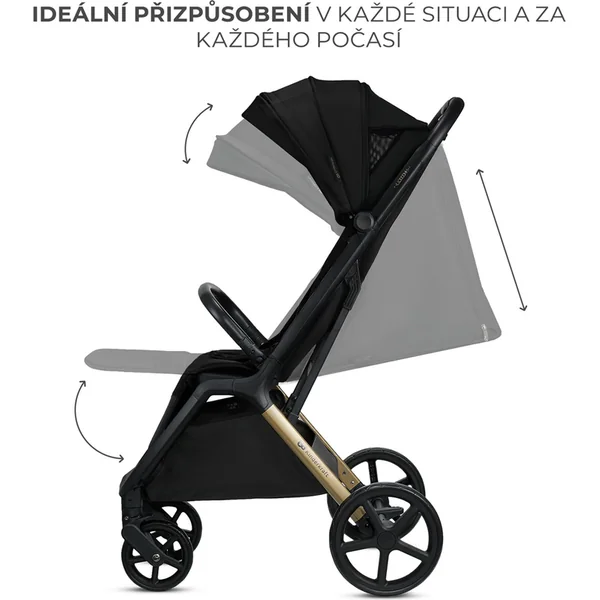Le canopy extensible avec zip et pare-soleil offre une protection supplémentaire contre le soleil et le vent.