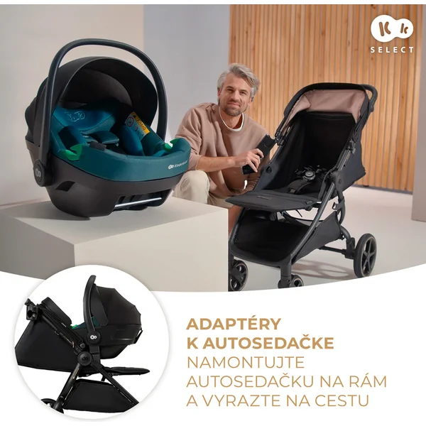Le cadre de la poussette est conçu pour accueillir un siège auto pesant entre 0 et 13 kg*. Si vous devez sortir un moment et que votre enfant s’endort dans la voiture – il vous suffit de fixer le siège auto au cadre de la poussette. Des adaptateurs sont disponibles à la vente séparément.