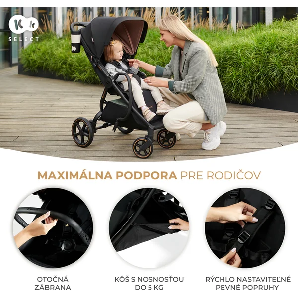 Mettre votre enfant dans la poussette n’a jamais été aussi simple. La barrière pivotante se plie facilement et les harnais de sécurité rembourrés à 5 points permettent d’attacher rapidement l’enfant. Vous pouvez ajuster les sangles en un instant d’une seule main. La MITZY dispose également d’un grand panier avec une capacité de charge allant jusqu’à 5 kg, dans lequel vous pouvez ranger des jouets pour enfants et des courses plus importantes.