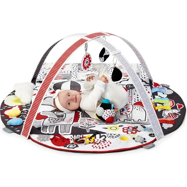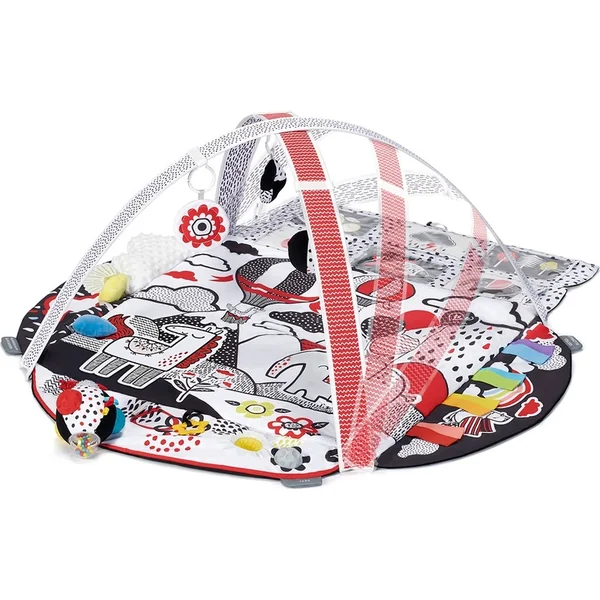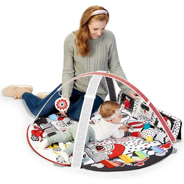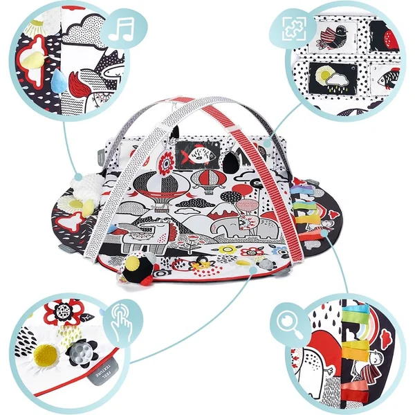 - 4. zone aide les enfants à exercer leur concentration : le tapis a un endroit spécial où l’on peut insérer des cartes contrastées et un miroir. Ces éléments attirent l’attention de l’enfant et lui apprennent à se concentrer.