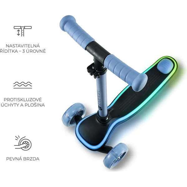 - Design moderne – les effets colorés garantissent que la trottinette attire l’attention au premier coup d’œil