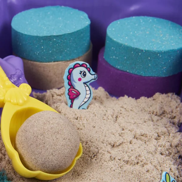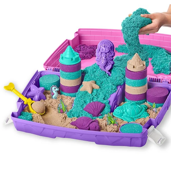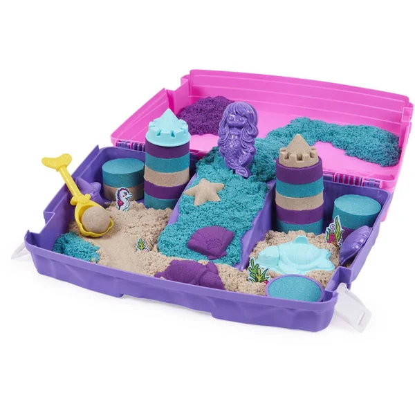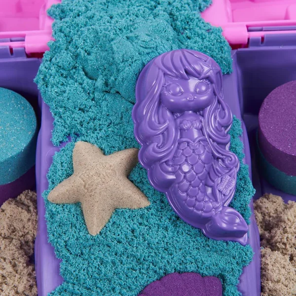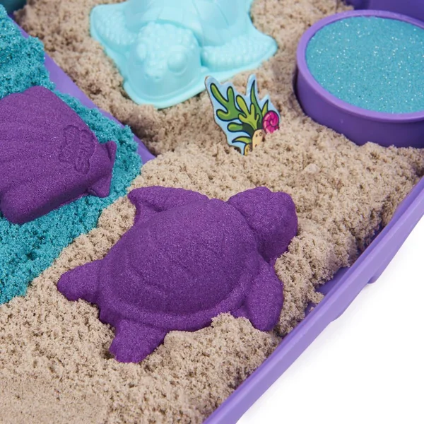 Coffret comprenant plus de 934 grammes de sable coloré dont 113 gramme de sable scintillant et 8 accessoires . Le bac se referme pour un rangement facile. A partir de 3 ans.