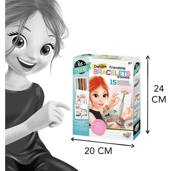 Les ensembles BeTeens sont destinés aux filles créatives qui souhaitent être originales et créer elles-mêmes leurs propres bijoux. L’ensemble créatif Bracelets d’amitié contient des instructions et des accessoires pour fabriquer 15 bracelets (bracelets de différents types et motifs, ainsi que des pendentifs).