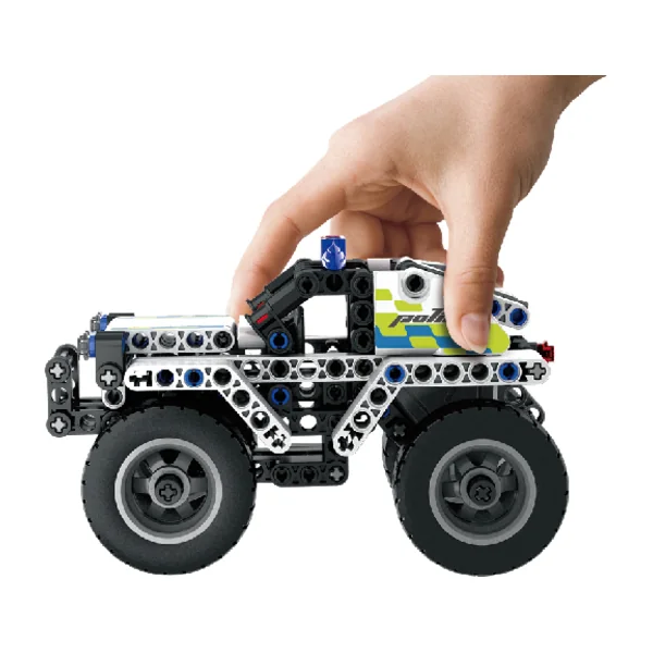 Et ce n’est pas tout – s’ils souhaitent plus tard transformer leur création en voiture de police d’intervention, il suffit d’acheter le kit MECHANICAL MASTER – Moto de police avec 193 pièces. Cela leur offrira encore des heures de plaisir et la possibilité d’expérimenter avec différents designs.
