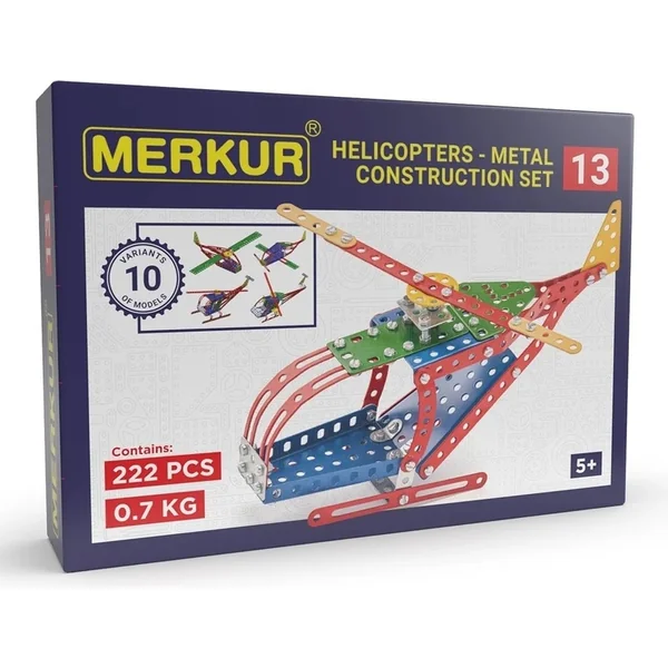 Kit Merkur Hélicoptère M013. Avec le kit, il est possible de construire jusqu’à 10 modèles selon les instructions.