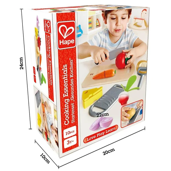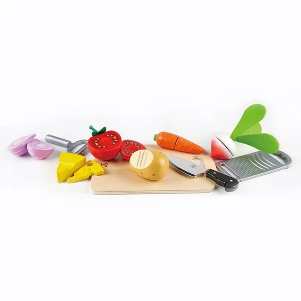 C’est l’heure du dîner ! Aide aux préparatifs en coupant, pelant et découpant les légumes et en râpant le fromage sur ta planche à découper. Les ingrédients peuvent être découpés et les différents ustensiles apportent davantage de réalisme.