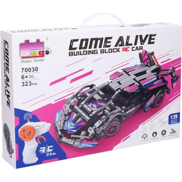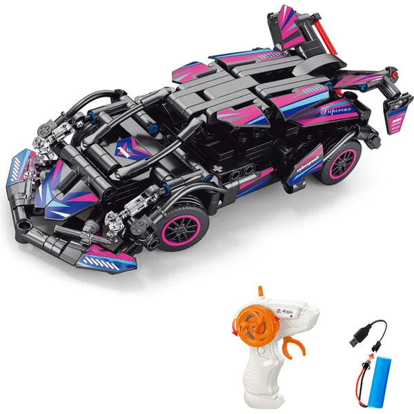Interrupteur ON/OFF au bas de la voiture et sur le côté du contrôleur. Mode d’emploi illustré sans texte et autocollants inclus.