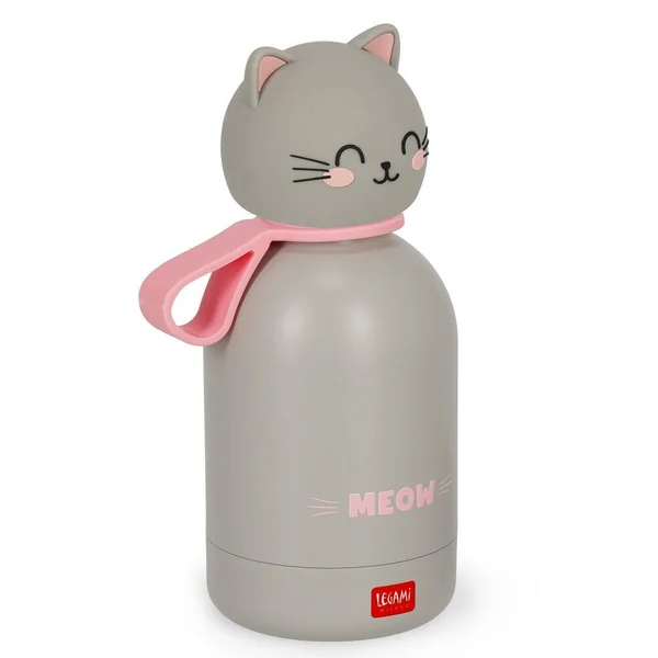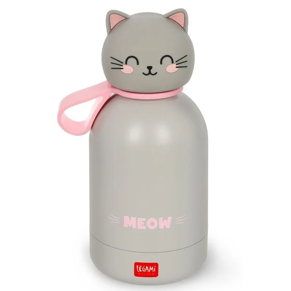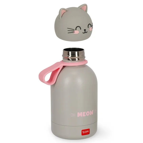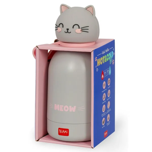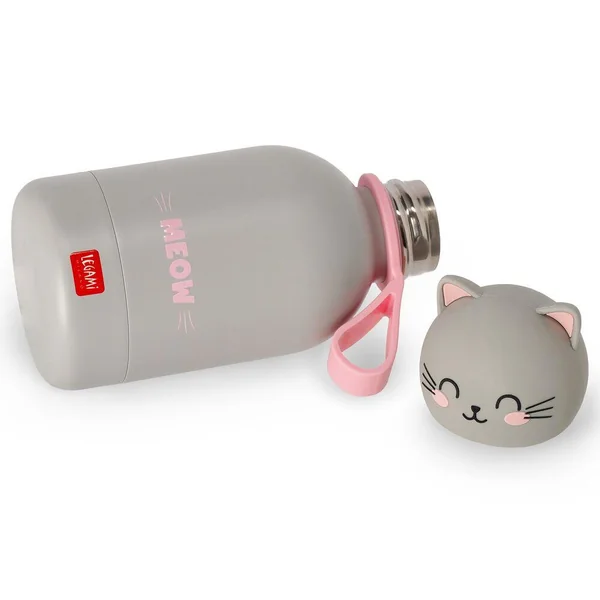 Gourde en acier double paroi inoxydable pour enfant 310ml. Légère et résistante. Fermeture hermétique. Matériau : acier inox 18/8 à double paroi, poignée en silicone amovible.