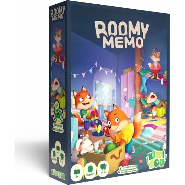 Pour une fois, ranger la chambre sera amusant ! Roomy Memo est un jeu coopératif joyeux et palpitant, où les enfants essaient ensemble de ranger les jouets éparpillés avant l’arrivée des parents. Il est nécessaire de se souvenir où les objets sont cachés. Les joueurs sont aidés par un vélo tournant, qui peut révéler un jouet, appeler l’aide d’une fée ou embrouiller un monstre. Chaque rotation déplace également la figurine des parents, si elle arrive avant que vous ayez rangé, vous perdez. Le jeu est destiné à 1 à 4 joueurs à partir de 4 ans et toute la partie dure environ 10 minutes. Le jeu développe la mémoire, la coopération et les réactions rapides.