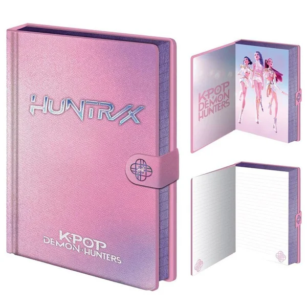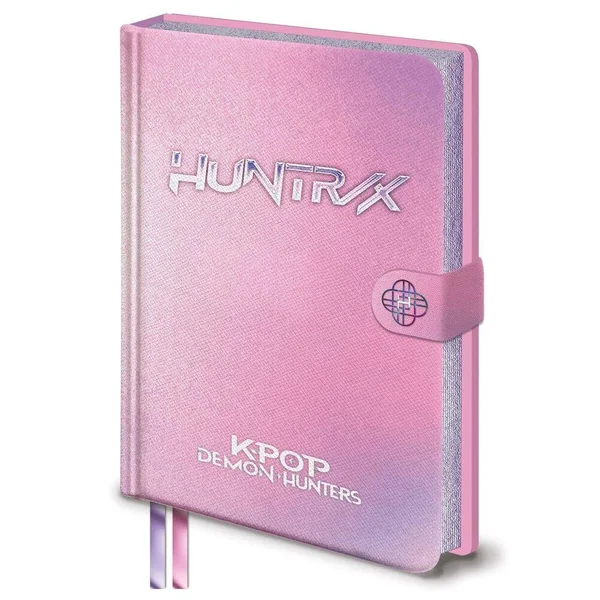 Carnet format A5 Premium de 120 pages avec une couverture rose Huntrix. Contient des pages blanches avec des lignes pour prendre des notes. Le groupe de K-POP est issu du phénomène Netflix K-POP Demon Hunters.