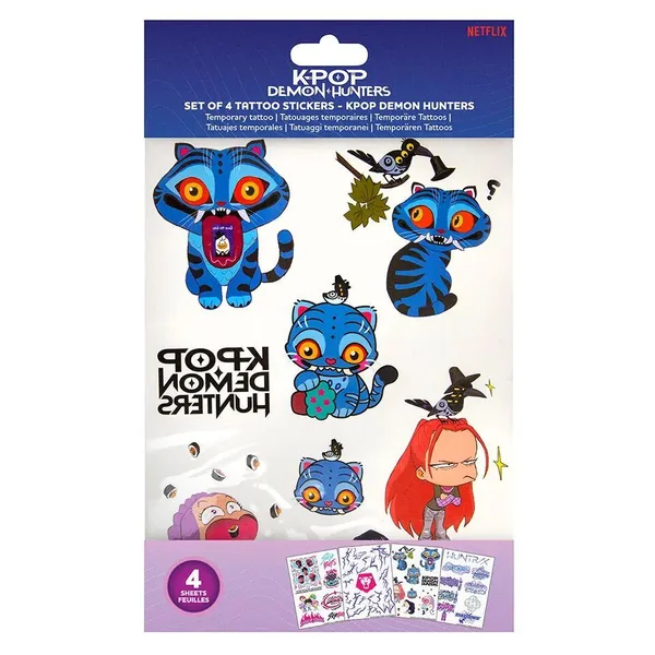 Stickers tatouages 4 planches dans le sachet.