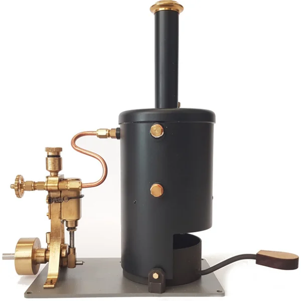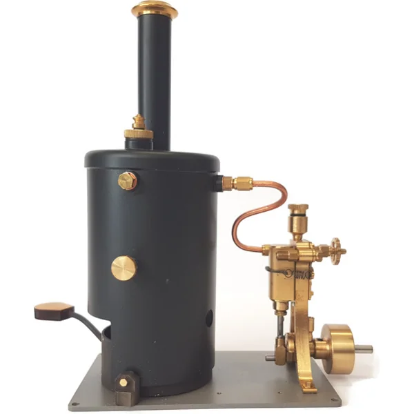 Machine à vapeur de maquette simple pour une propulsion authentique des modèles de bateaux. La chaudière à vapeur à combustible solide entraîne une machine à vapeur monocylindre. La régulation de la quantité de vapeur est possible grâce à une vanne manuelle.