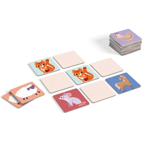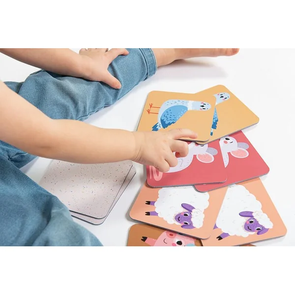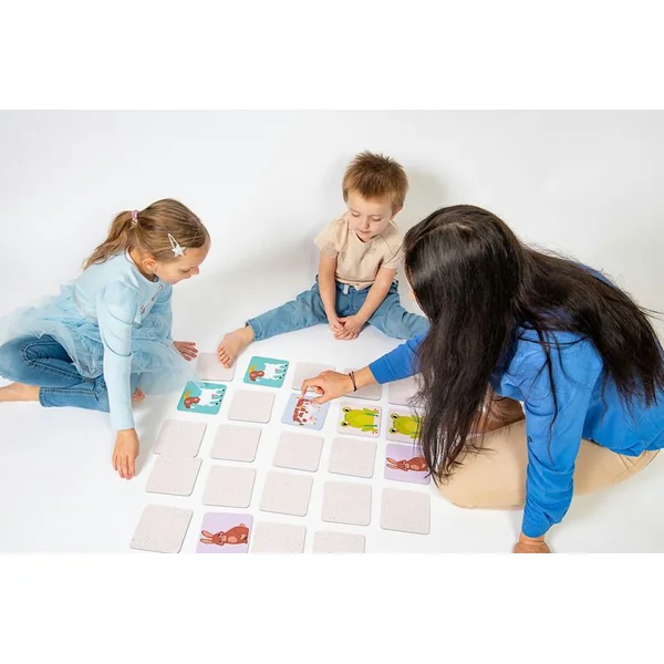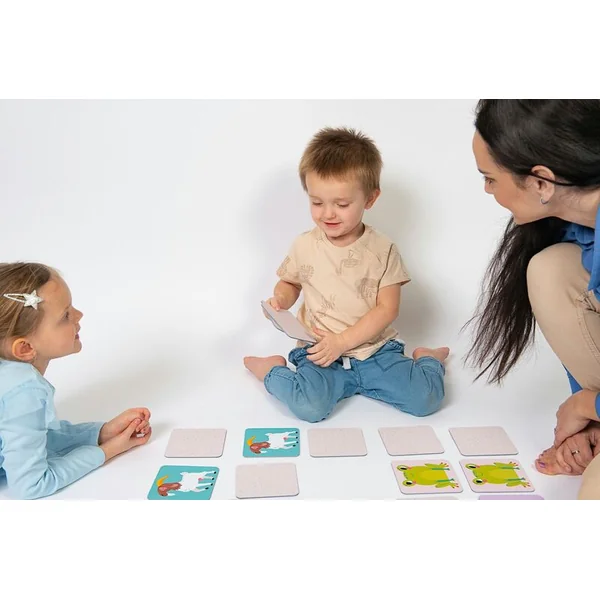 Pour les plus petits joueurs, il est possible de commencer avec les cartes face visible, mélangées. Apprenez aux enfants à regrouper progressivement les cartes et à associer correctement les paires. Choisissez 3 paires différentes du set et placez-les face visible. Augmentez progressivement le nombre de paires : 6 paires, 9 paires et ensuite toutes les 12 paires.