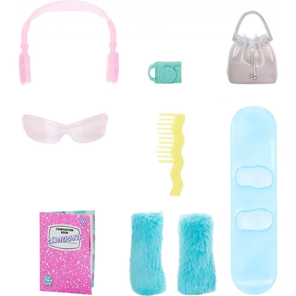 Ce pays des merveilles hivernal est parfait pour jouer avec votre imagination ! Candylicious est habillée de modes emblématiques, avec une veste en velours côtelé à fourrure, une combinaison bleu-rose et une jupe métallique brillante, prête pour la piste de danse et une bataille de boules de neige !