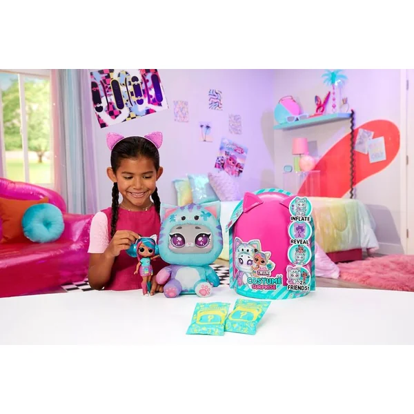 Préparez-vous à déballer la meilleure surprise et vivez un unboxing comme jamais auparavant avec la toute nouvelle L.O.L. Surprise Tweens Costume Surprise de la poupée mode préférée Emma Emo dans un magnifique nouveau look et son adorable costume gonflable de chaton.