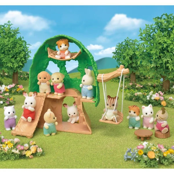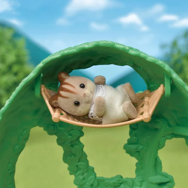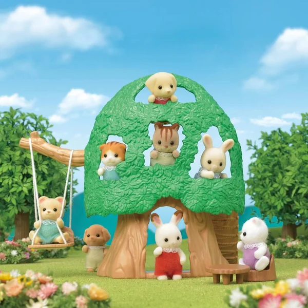 La cabane des bébés fait parti du nouvel univers de la crèche et du jardin d’enfant. Contient : Ambrose, le bébé écureuil roux, la balançoire, un hamac et des accessoires.