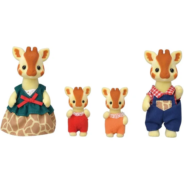 La famille girafe est composée de 4 personnages : la maman, le papa et les bébés. Ils sont tous articulés et habillés avec soin. Leurs vêtements peuvent être enlevés et remis à loisir. Avec ce coffret votre enfant pourra donc inventer de nouvelles aventures !
